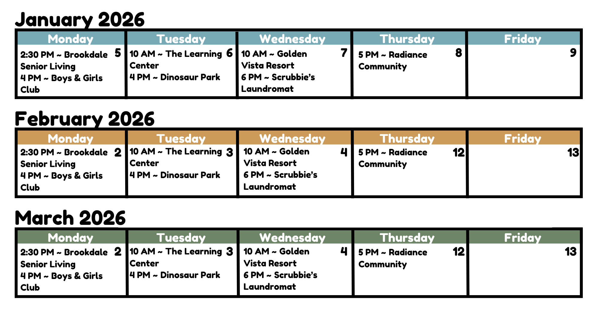 Library staff take the Mobile Library on its current route the first full week of the month (holidays excluded).