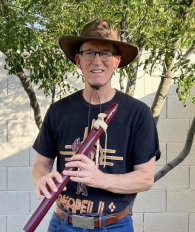 12:00-12:25 | Calming Wind—Howard Sadler born in west Texas, I love the sight and sound of the old west when I moved to Arizona. Many years ago I heard a sound that touched me deep inside my soul. I found the calling of the Native American flute. I picked one up and within a few months I was playing it well. Now 17 years later I have produced three CDs and played at some big event such as at the AZ Diamond Backs Native American recognition day. Through DNA I found out I am part of the Coahuila tribe in northern Mexico with some off shoot of the Aztecs.