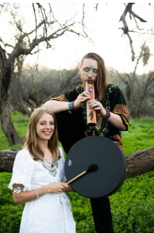 1:30-1:55 |  Liquid Flame – Adora and Zen are a Duality dissolving duo, giving hint to one of the many meanings behind the name. We believe in the individual and collective power of using life’s struggles as fuel for creation. Music has been one of many life-changing modalities that has profoundly healed us, so we blend elements of ancient shamanic roots with modern technology to bring you a unique, majestic soundscape experience. Zen is a jack of all trades multi-instrumentalist and specializes in playing Native American Flutes (single + double), as well as yidaki (didgeridoo) and throat singing. Adora defies duality at the heart, a small Fae who keeps a big beat; as the drummer of LF, her hypnotic voice and infused toning will take you deep while simultaneously maintaining a lighthearted disposition. Our Liquid Flame performance can transport you to etheric places, and offers a space of authentic community connection.